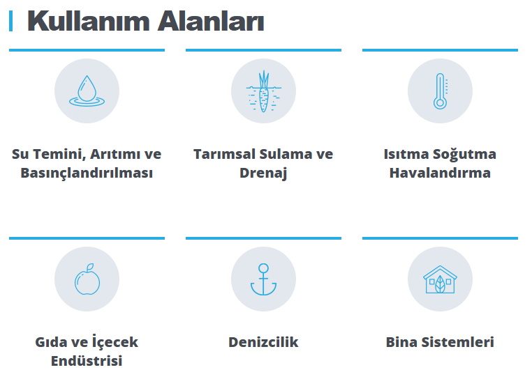 - Pompalar IEC yapı büyüklüklerine uygun yüksek verimlilik sınıfında elektrik motorları ile kullanılır